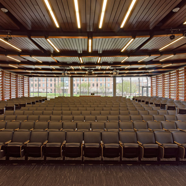 The Grainger Auditorium, Room 1002: This room seats 400 and is an excellent place to host major lectures and colloquia. It may also serve as the site of plenary sessions of conferences and workshops. No food or beverages are allowed in this room. Rate includes audiovisual support personnel and a pre-event private session for audiovisual setup. |