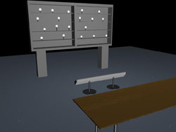 Davis, Chen, and Griffith first began developing the robot through the ECE Advanced Digital Projects Laboratory (ADSL) in Fall 2007, and have been making improvements to the shooting accuracy of their design ever since. To finish the robot, the ECE machine shop is working on a mount for its laser sight, and the students are hoping to enhance the targeting algorithms and provide more robust calibration options within the software. After the robot’s capabilities were tested during public display at last month’s Engineering Open House, the students think they have a decent shot at winning the DEFCON competition.