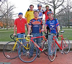 Photo by Brad Vest courtesy of The Daily Illini. Among the Illinois 4000 cyclists are: (back, from left): Brian Albrecht, Anish Thakkar, and Hatim Rahman. Front (front, from left): James Ballard, Nick Ludmer, and Jonathan Schlesinger.
