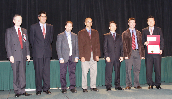 The paper, entitled "An MLSE (Maximum-likelihood sequence estimating) Receiver for Electronic Dispersion Compensation of OC-192 Fiber Links," appeared in the IEEE Journal of Solid State Circuits in November 2006. However, the group’s research and development was first presented in the form of a conference paper at ISSCC, a forum for presenting advances in solid-state circuits and systems-on-a-chip, in February 2006. Shanbhag and Singer, ECE alumni Hyeon-Min Bae (PhD ‘04) and Jonathan B. Ashbrook (MSEE ‘00), and Jinki Park and Sanjiv Chopra, both of whom worked at Intersymbol, co-authored the award-winning paper, which stemmed from the conference article.