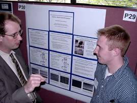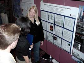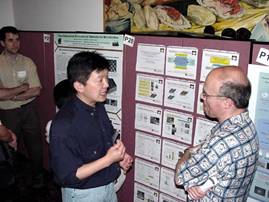 Judging from the comments of participants at the workshop poster session, that goal for the workshop was met. "We've actually been talking with a couple businesses here about being able to pattern at such a small level," said ECE graduate student Michael Word of his work with electron beam nanolithography. "They're surprised and saying 'That's exactly what we want to do.' And we're showing them we can do it for you. It's a great way to network."