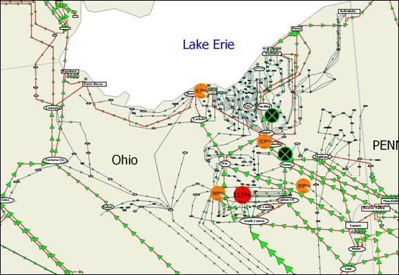 Two example color images demonstrating the visualization capabilities of PowerWorld Simulator are shown below.