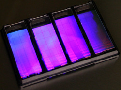 To enhance the fluorescence, Cunningham and his colleagues begin by creating plastic sheets of photonic crystal using a technique called replica molding. Then they fasten commercially available quantum dots to the surface of the plastic.