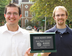 The winners of the Best Paper Award at the 2009 IEEE International Conference on Nanotechnology are Justin Koepke and Joshua Wood graduate students in ECE Professor [profile:lyding]'s research group.