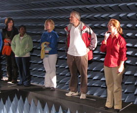 The anechoic chamber proved to be a popular part of the tour of the lab.