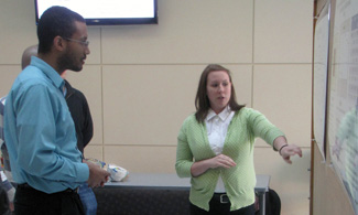 The students then present their research at a poster session, which was held this semester in early November in the first-floor atrium of the Micro and Nanotechnology Laboratory. Each student made a 24x36 poster and wrote a two-page IEEE formatted paper. Conference proceedings are available online at https://wiki.engr.illinois.edu/display/ece498LGFA09/.