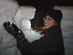“None of us had built an igloo before so we had to improvise bit by bit. We had such powdery snow, unlike the people on YouTube, so we had to spray our bricks to freeze them together,” said Lin.