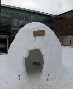 The approximately 8 ft x 8 ft igloo was the work of ECE graduate student Kevin Lin and 9other students from varying departments, including several from Computer Science.