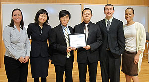 Effimax Solar (effimaxsolar.com), one of the first place winners, is developing a nanotexturing technique to increase the efficiency and lower the production cost of silicon solar cells that they will sell to photovoltaic manufacturing plants. Founded by ECE grad student Yi Chen and based on the PhD research he is conducting with ECE Assistant Professor Gang Logan Liu, Effimax Solar team members included Aaron Wiener, Dave Tarvin, Rui Cai of the College of Business/Technology Management, and Jingrui Lu.