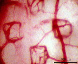 The researchers tested the stamp on the surface of a chicken embryo. After a week the stamp was removed, revealing a network of new blood vessels that mirrored the pattern of the channels in the stamp.