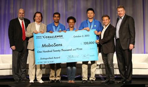 “The device has actually changed a lot since then,” said Assistant Professor Gang Logan Liu, referring to his smartphone-based biosensor, MoboSens, which earned a top award at the Vodafone Wireless Innovation Project last spring. After that competition, he and his team of graduate students used the prize money to continue developing the device, and, early last month, when they presented an enhanced design at the Nokia Sensing XChallenge in Santa Clara, they were awarded again. It was a Distinguished Award, carrying a prize of $120,000 from Nokia and XPrize.