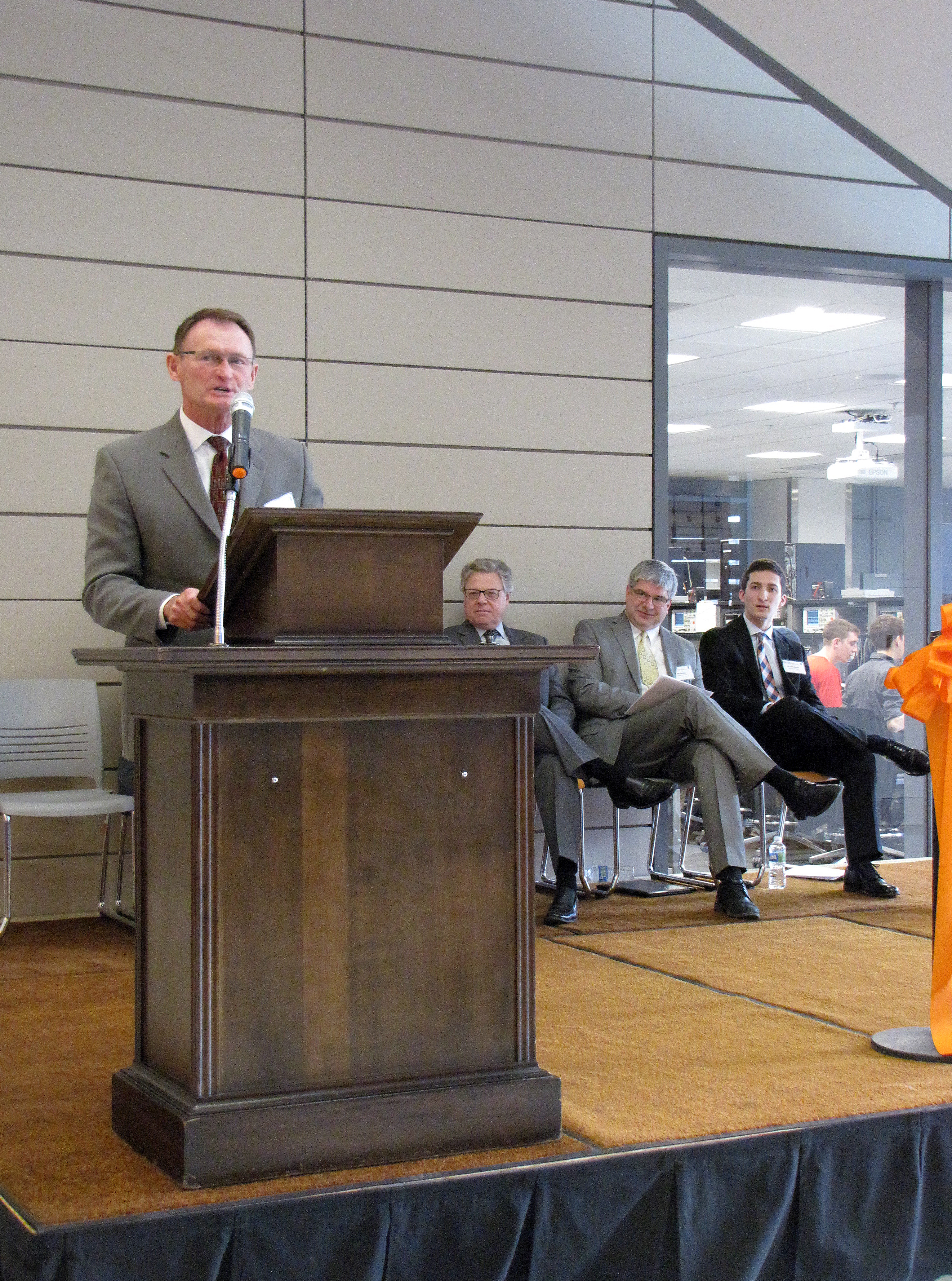 At a dedication this week for two spaces named for Texas Instruments Incorporated (TI) in the Electrical and Computer Engineering Building, Steve Lyle remarked on the company’s next step in supporting engineering students at Illinois: funding for a statue depicting a female engineer, intended to inspire current and future women who aspire to attain a degree and career in engineering.