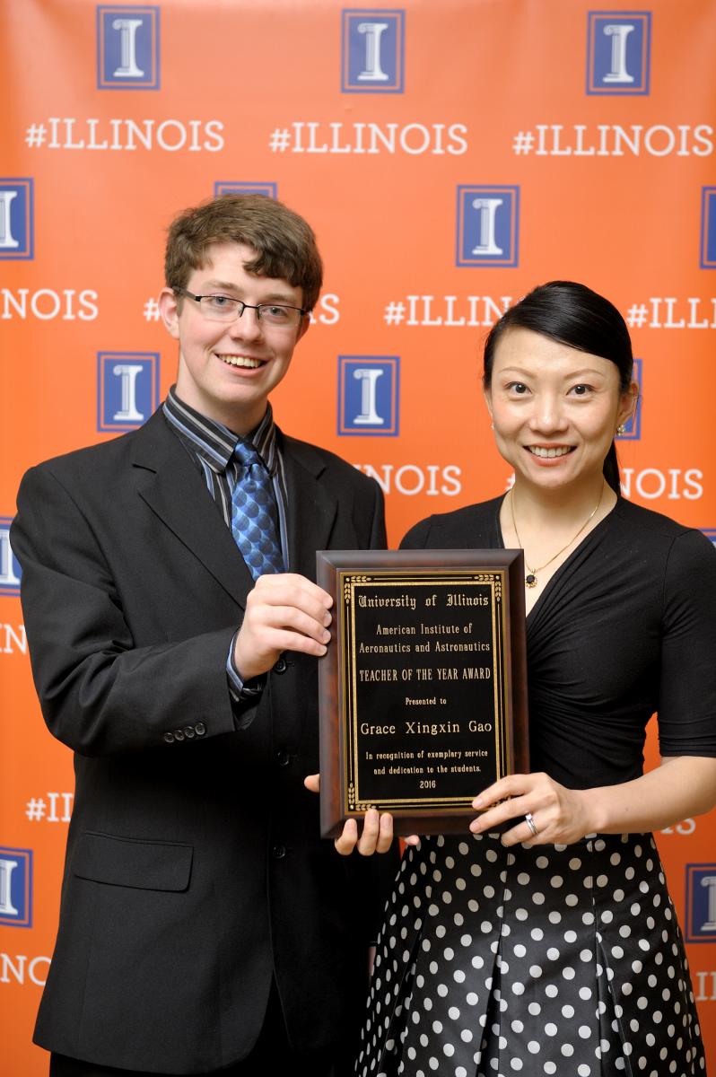 Grace Xingxin Gao has received the American Institute of Aeronautics and Astronautics Illinois Chapter’s 2016 Teacher of the Year award.