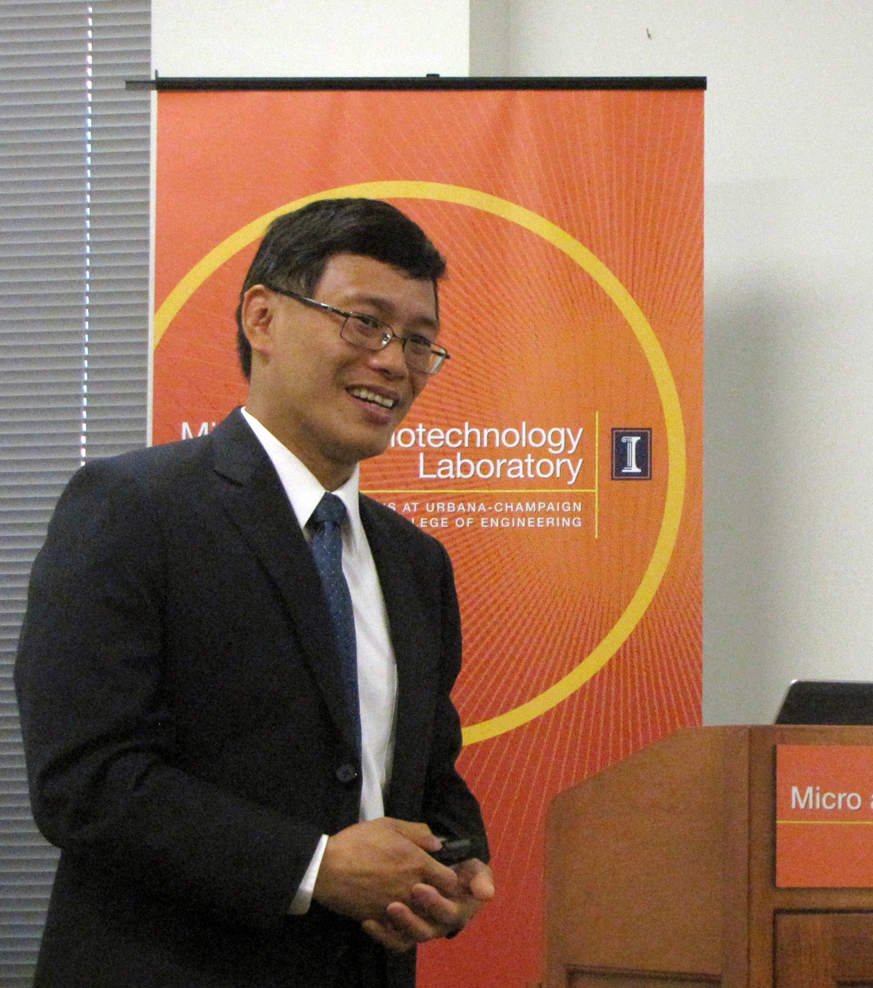 Students, faculty, and staff gathered at MNTL the morning of Monday, June 27, to hear Professor Shyh-Chiang Shen (PhD ’01), visiting from the Georgia Institute of Technology, discuss III-Nitride Power Electronics. The ECE ILLINOIS alumnus currently conducts research at the Center for Compound Semiconductors (CCS), which is led by fellow alumnusRussell Dupuis (PhD ’73, MS ’71, BSEE ’70).