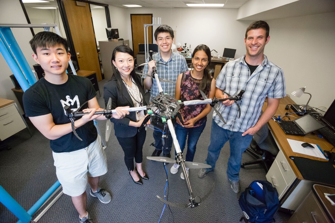 Prof. Gao and her students conducted flight tests in a GPS-challenged environment using the UAV built by her research group. Although Gao’s group has received the FAA Certificate of Authorization (COA) for flying UAVs, their goal is to fly UAVs over busy streets safely. Their solution is to fly UAVs in a moving cage.