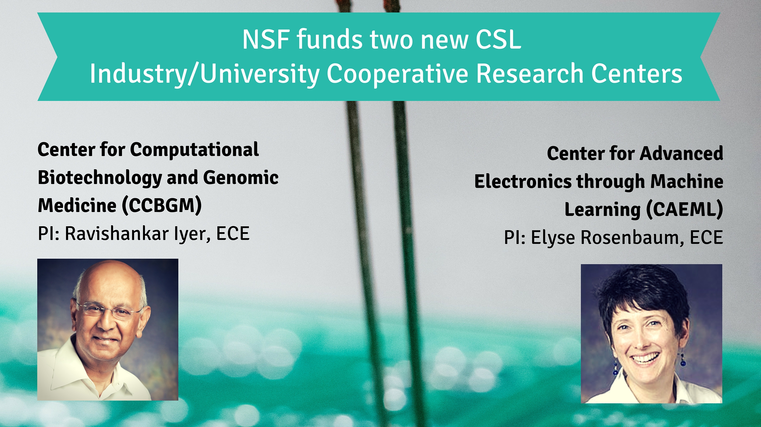 The National Science Foundation (NSF), along with several industry partners, have funded two new Industry/University Cooperative Research Centers (I/UCRC) at the University of Illinois. Led by ECE faculty members, the Center for Advanced Electronics through Machine Learning (CAEML) and the Center for Computational Biotechnology and Genomic Medicine (CCBGM) will capture research needs in two critical fields: microelectronic circuits and systems for semiconductors; and a platform for generating, interpreting, and applying genomic data.