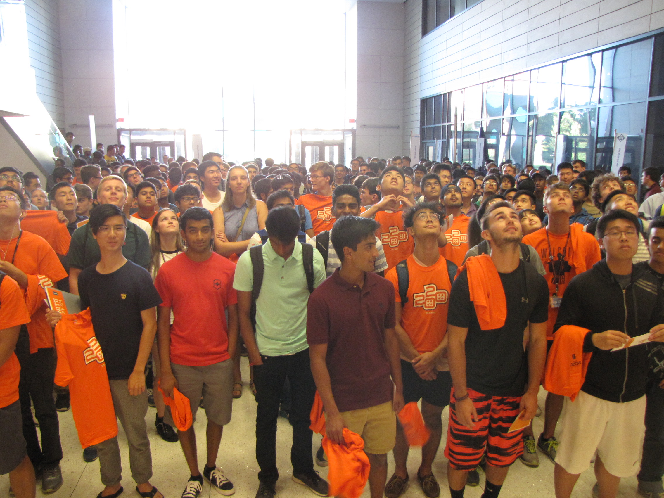 Students also heard alumnus Yemana Bordain's (PhD '15) perspective and ten things current ECE seniors wish they knew as incoming freshmen. The evening ended with a new tradition, taking a class picture in the lobby. Attendees also received ECE ILLINOIS Class of 2020 t-shirts and enjoyed pizza as they met representatives from more than two dozen student organizations.