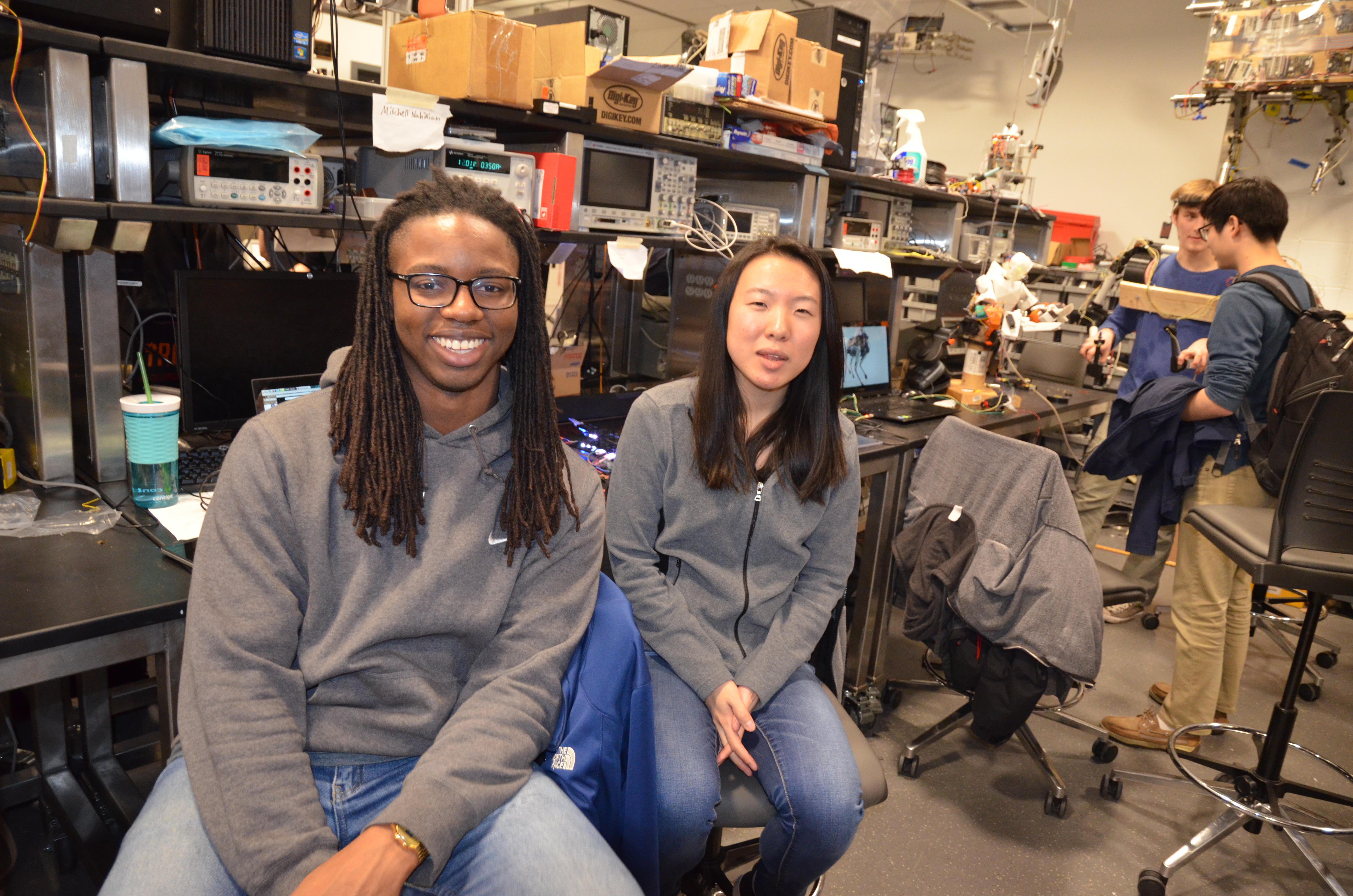 Jamal Simmonds and Susan Chen in front of their LED Sound Poster.