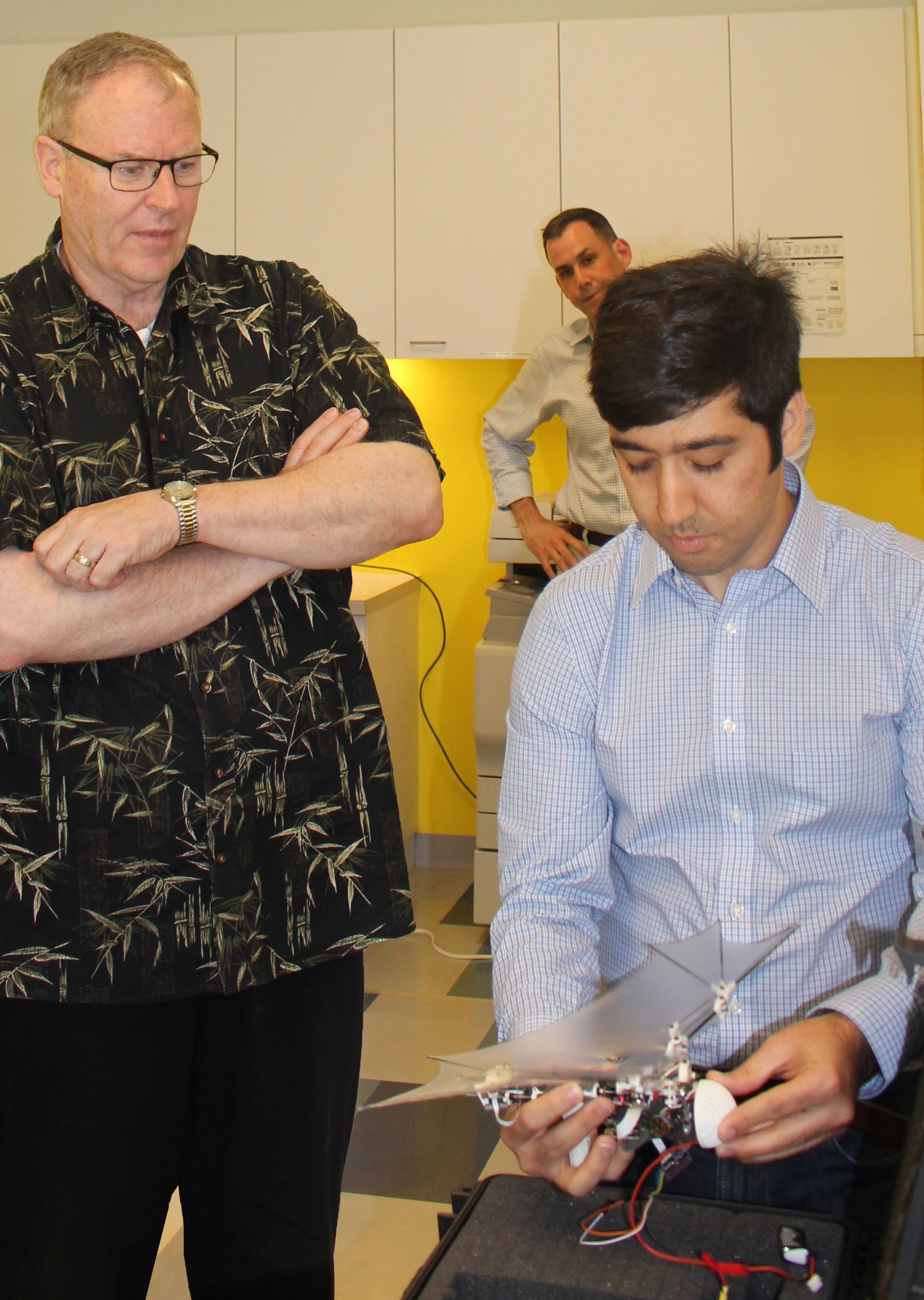 Work explored two other projects during his visit, including drone operation in close proximity to people and self-healing polymers.