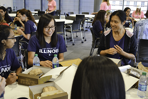 The “WIE by the Numbers” slide presented during the session said it all. Since its inception 15 years ago, 2,724 female freshman engineering students have participated in Orientation, with 268 students from the fall 2017 freshman class attending. Another impressive number? The 268 women attending Orientation were a just bit more than half of the total number of female engineering students in the fall 2017 class. This represents the largest number (496) and percentage (25%) of women ever in a freshman engineering class at Illinois—a milestone for Women in Engineering and a cause for celebration. And celebrate they did, as they arrived on campus a few days ahead of all-campus-move-in day, eager to get a head start—to get familiar with campus, make friends and build a community, and to receive sage advice from some older and wiser women in engineering.