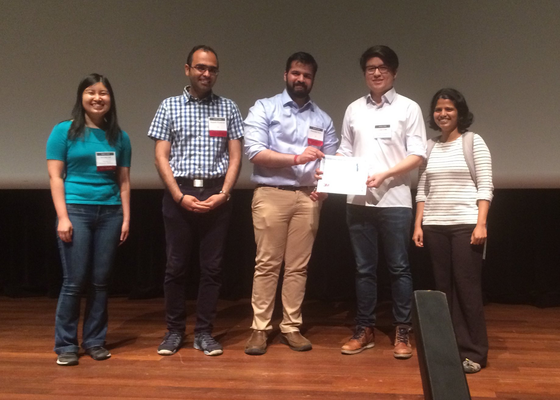 Out of about 50 submitted posters, "A dual approach for optimal algorithms in distributed optimization over networks" was selected for one of the three best poster prizes, each accompanied with a $1000 cash prize. The team included Uribe, a PhD student also affiliated with CSL, ECE ILLINOIS alumna Soomin Lee (PhD '13), Illinois Industrial and Enterprise Systems Engineering Associate Professor Angelia Nedich, who is also an ECE ILLINOIS affiliate, and Alexander Gasnikov from the Moscow Institute of Physics and Technology.