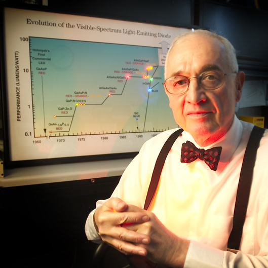 John Bardeen Endowed Chair Emeritus Holonyak previously received the 2017 PSA (The Photographic Society of America) Progress Award for his invention of the first visible spectrum diode and LED. With the assistance of his students, Holonyak has managed to create a number of major optics-related inventions such as the visible laser and the use of LED in displays and lights. His contributions have earned him a variety of awards and honors such as the National Inventors Hall of Fame.