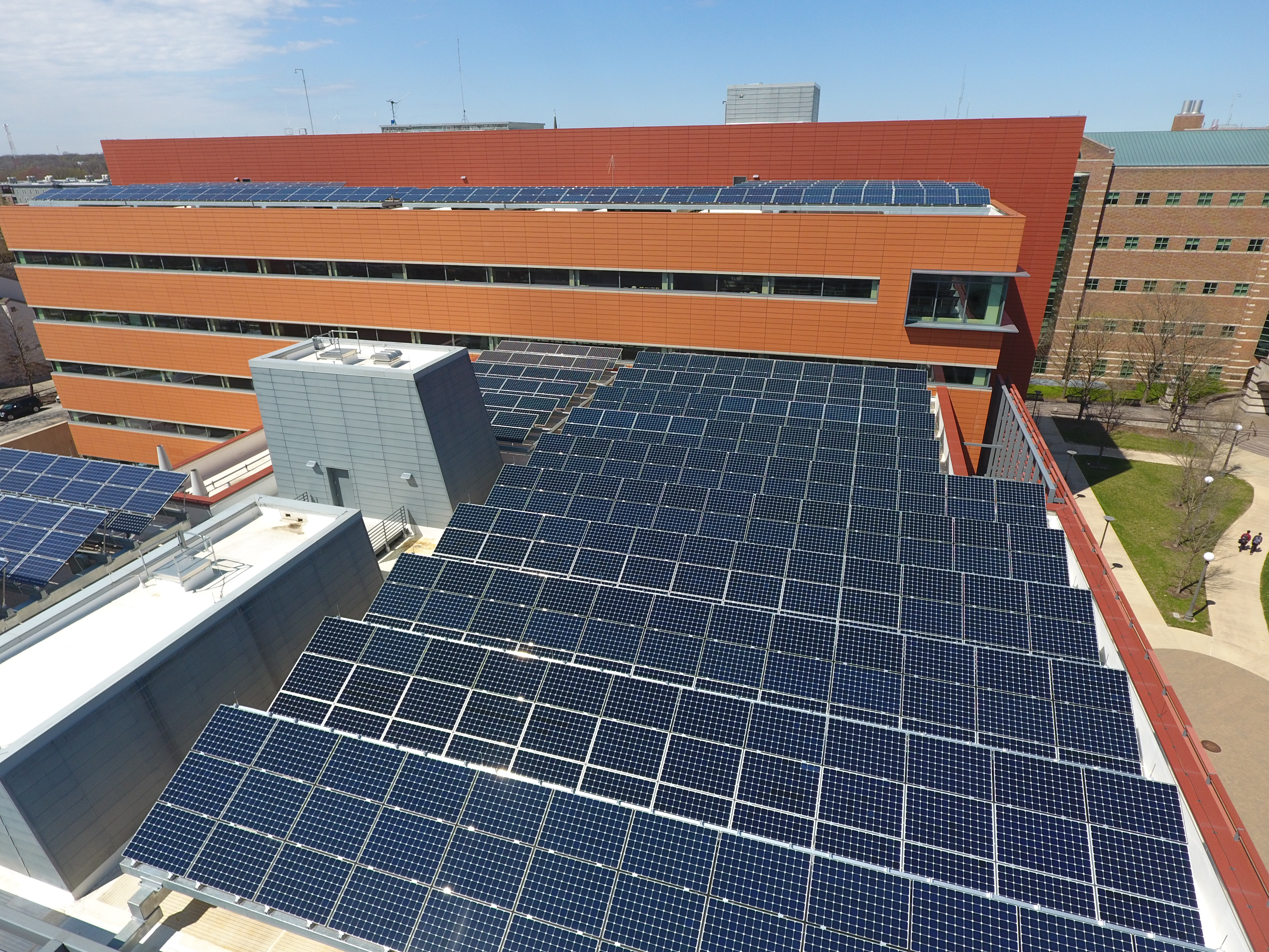 The solar panel installation on the top of the Electrical and Computer Engineering (ECE) building at the University of Illinois at Urbana-Champaign is now generating renewable electricity for the state-of-the-art building and contributing to the campus-wide power grid.