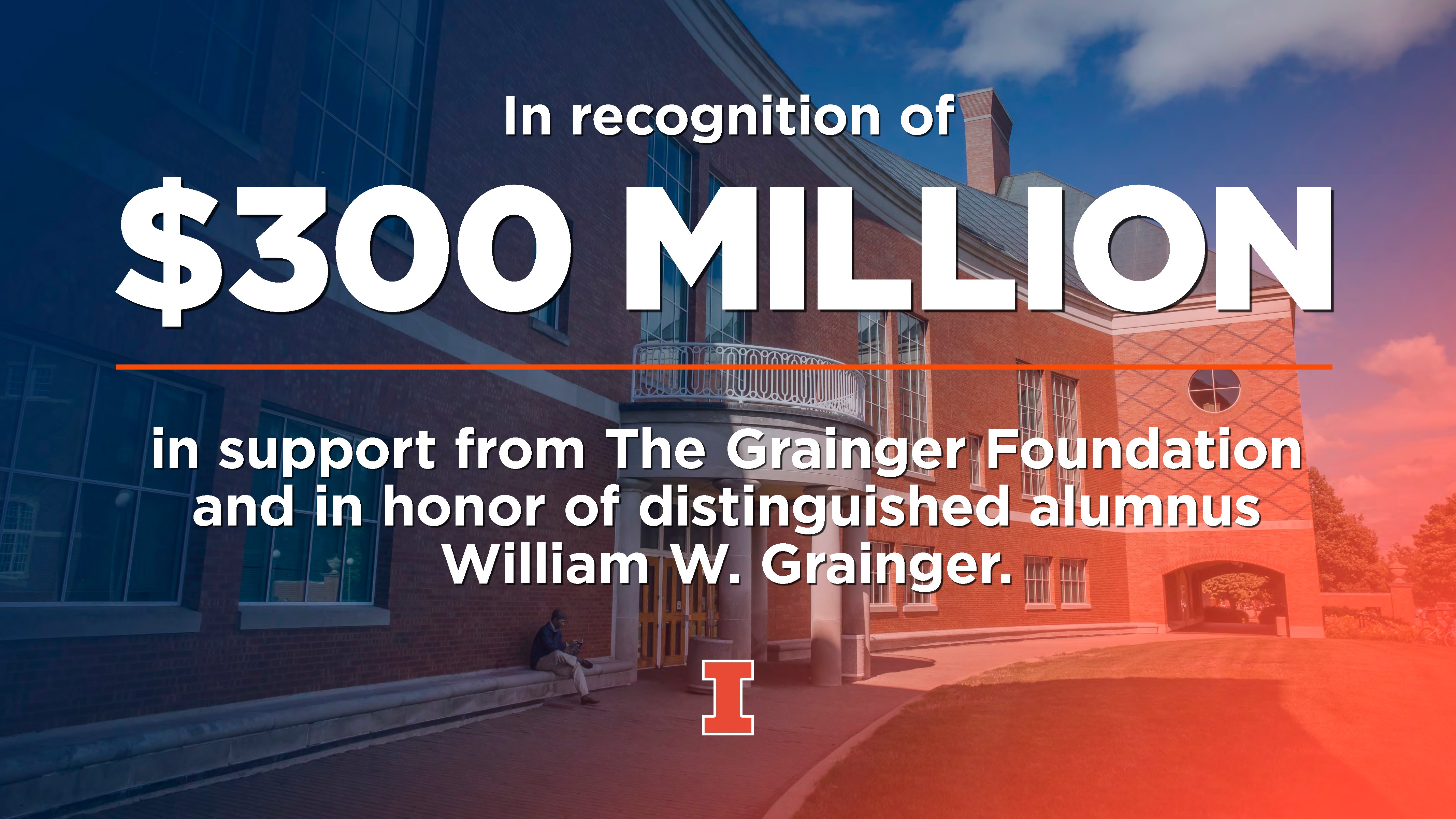 The University of Illinois at Urbana-Champaign’s College of Engineering has become The Grainger College of Engineering, recognizing a new $100 million gift from The Grainger Foundation and more than $300 million in total support, after consultation with the Chancellor’s Joint Advisory Committee on Investment, Licensing, and Naming Rights and with approval by the University of Illinois Board of Trustees.