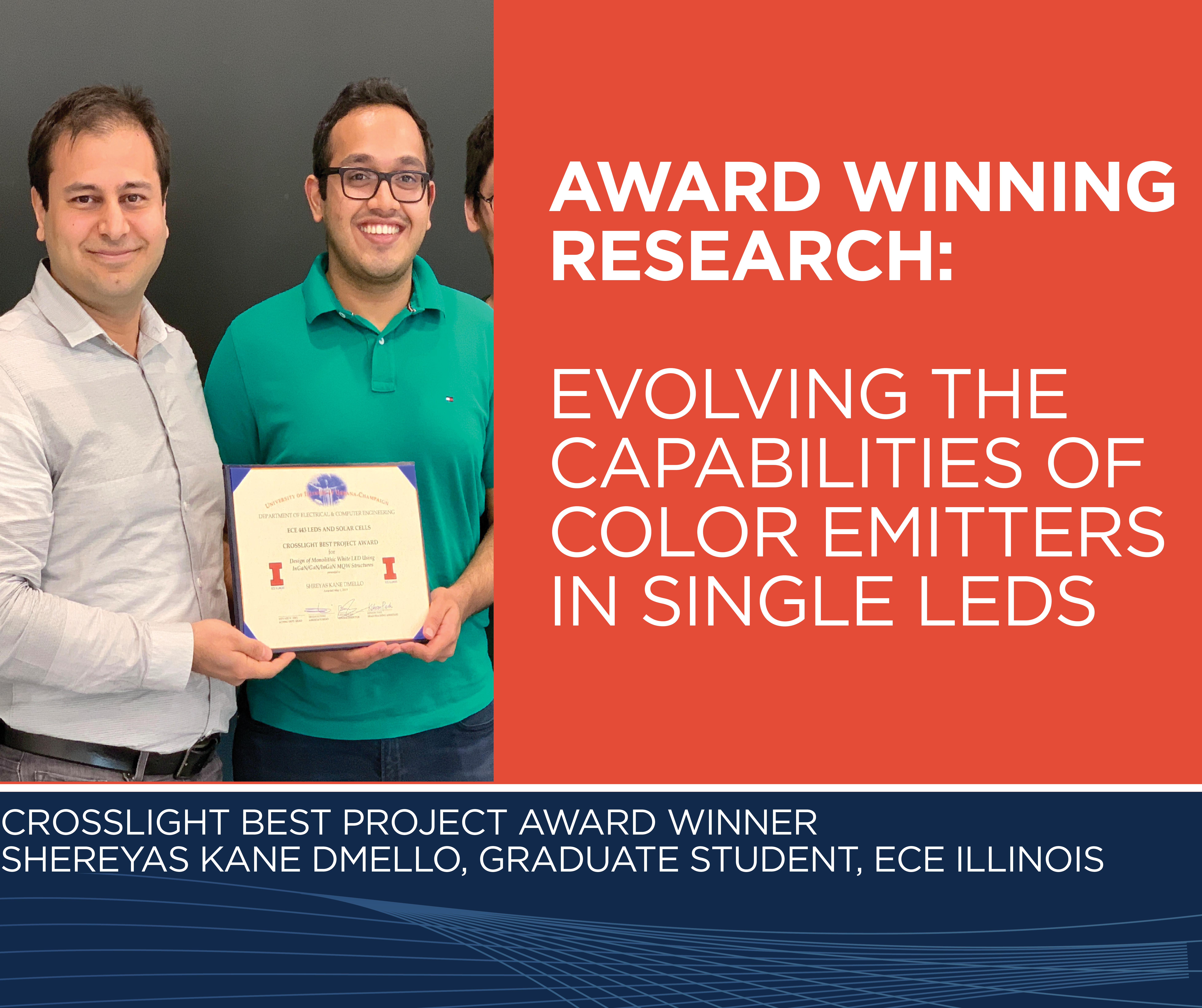 The Crosslight Best Project awardees for the spring 2019 semester included ECE ILLINOIS graduate students Yi-Chia Tsai and Shreyas Kane Dmello.