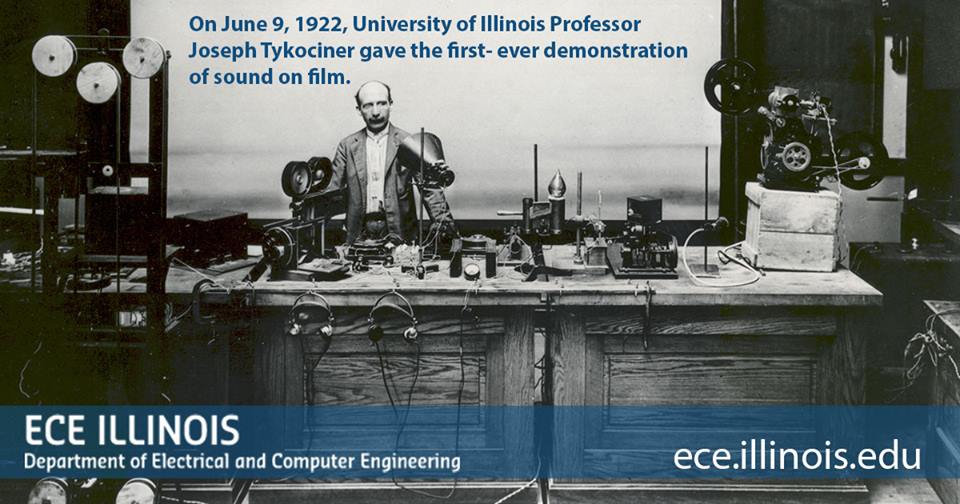 On June 9, 1922, movies were changed forever when University of Illinois Electrical Engineering Professor Joseph T. Tykociner showed how movies could talk in a public demonstration and lecture. Illinois Public Media News marked the anniversary with a radio story that includes audio of Tykociner's voice.