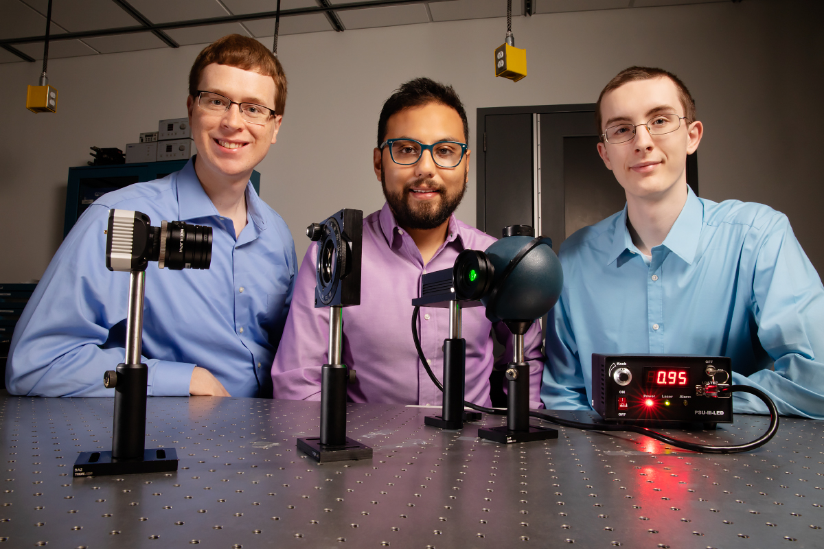 Gruev's research team (Gruev not featured)ECE ILLINOIS Professor Viktor Gruev led a team of researchers to develop a new camera that could significantly improve the ability of self-driving cars to identify hazards in challenging imaging conditions. By detecting polarization and featuring a dynamic range that is about 10,000 times higher than today's commercial cameras, these new cameras are able to see better in hazardous driving conditions including "the transition from a dark tunnel into bright sunlight or during hazy or foggy conditions" according to The Optical Society.