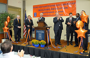 Bement's comments preceded the dedication of the recently expanded Micro and Nanotechnology Laboratory (MNTL). The $18 million, state-funded expansion project added new lab, research, classroom, and meeting space, creating one of the nation's premier and largest research laboratories in academia for micro and nanoelectronics, nanophotonics and optoelectronics, nanomedicine and bionanotechnology, and MEMS/NEMS and integrated systems research.