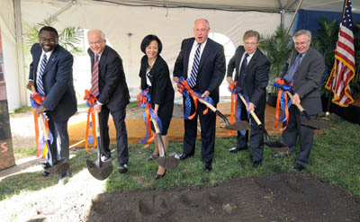 Illinois Governor Pat Quinn joined University of Illinois President Michael Hogan, Vice President of the University of Illinois and Chancellor of the University of Illinois at Urbana-Champaign Phyllis Wise, College of Engineering Dean Ilesanmi Adesida, and ECE Department Head Andreas Cangellaris to launch the construction of the building.