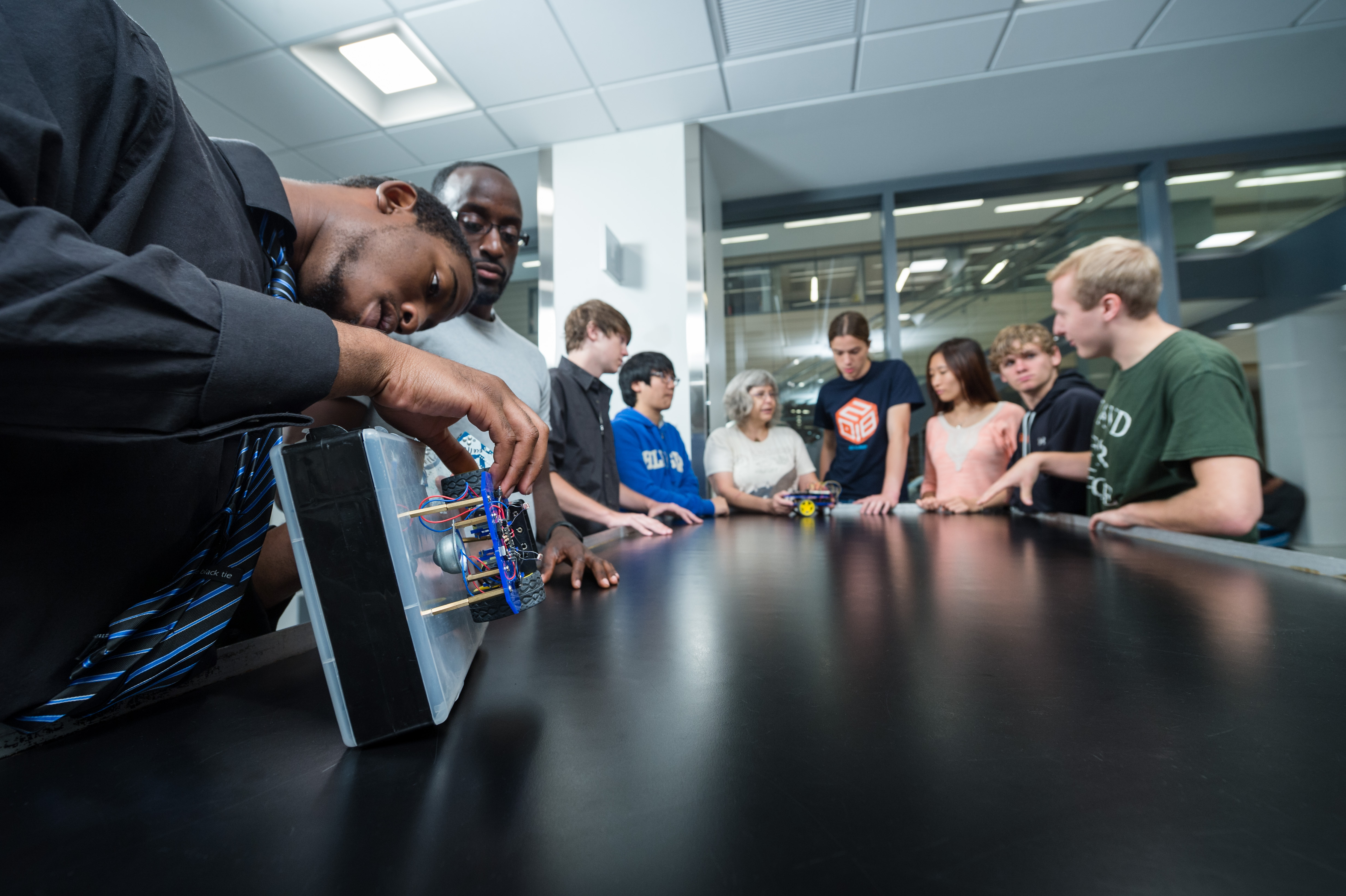 The TI Electronics Design Lab is a space where every ECE ILLINOIS freshman will learn by doing, allowing them to gain hands-on, real-world experience with TI analog and embedded technology found in the freshman design labs. In addition, the TI Student Center provides a home base to members of ECE ILLINOIS student organizations where they can collaborate on daring ideas, conduct insightful meetings, and build beneficial experiences that will serve them as they become tomorrow’s leaders.