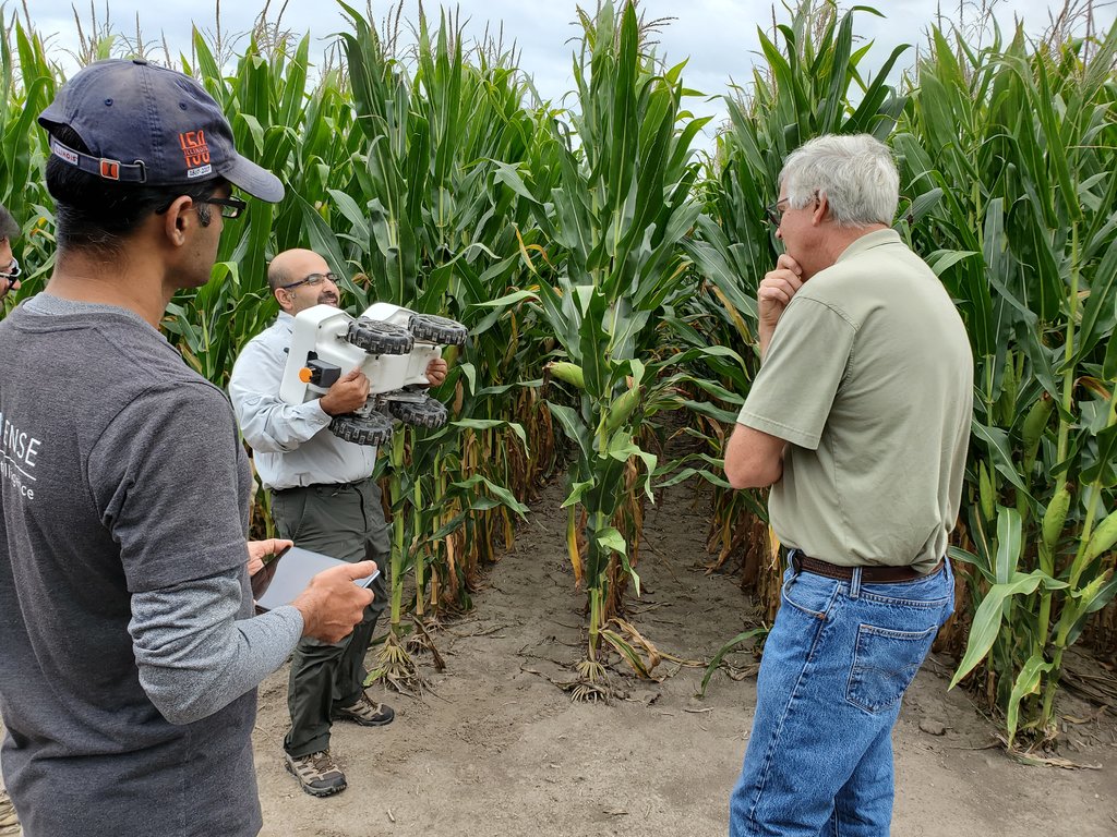 Illinois ECE Assistant Professor Girish Chowdhary is working with autonomous robots to help revolutionize plant breeding. Chowdhary's robot TerraSentia can navigate a field by scanning its environment with thousands of laser pulses.