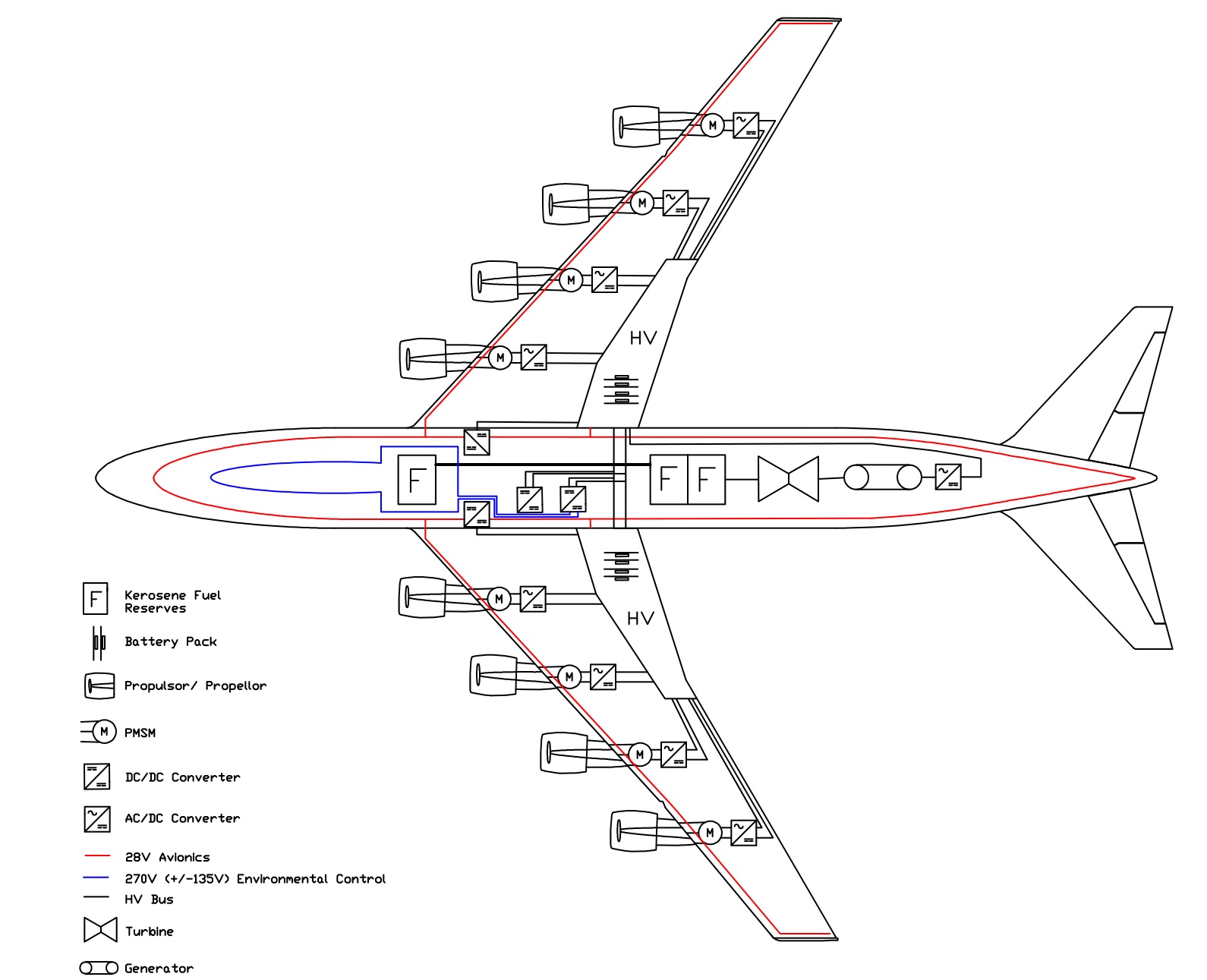 The winning design features several groundbreaking elements. The team chose a lithium-air split battery system with an energy density of 500 watt-hours per kilogram – technology they predict will be available by 2035. They also chose an operating voltage of ±3000 volts DC, significantly higher than typical aircraft designs but necessary for efficient power transmission.